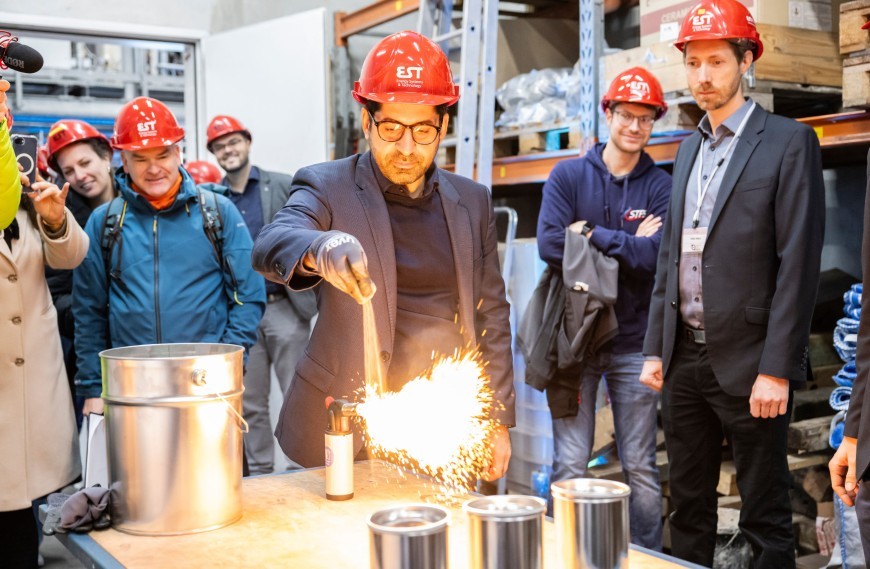 To advance environmentally friendly energy storage solutions, TU Darmstadt is consolidating its research activities on metallic energy carriers in the newly founded Metal Energy Hub. The centre, which was inaugurated in November on the Lichtwiese campus, receives three million euros in funding from the State of Hessen and the European Union. Hessian Minister of Economic Affairs Kaweh Mansoori visited the university to present the funding notification and celebrate the start of a new pilot plant.
