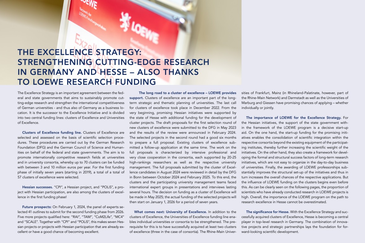 The Excellence Strategy is an important agreement between the federal and state governments that aims to sustainably promote top-level research and strengthen the international competitiveness of German universities – and thus Germany as a business location. It is the successor to the Excellence Initiative. The decision on the funding of the Clusters of Excellence will be made in May 2025; the actual funding of the selected projects will then start on January 1, 2026 for a period of seven years.