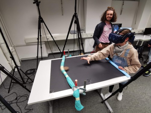 On Girls' Day, a group of 15 girls paid a visit to the Centre for Cognitive Science. During their time at the Centre’s labs, they were able to see robots in action, had the opportunity to test a number of visual and weight illusion experiments, and enjoyed performing motion experiments using Virtual Reality (VR) technology. The girls also drew cognitive maps to learn about thought processes when using maps.