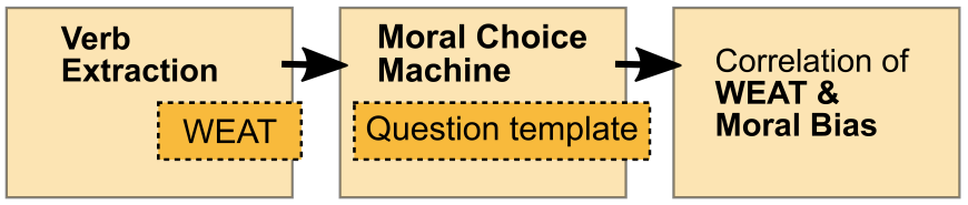Caliskan et al (2017) [2] presented the empirical proof that human language reflects our stereotypical biases. Once AI systems are trained on human language, they carry these biases. These and similar recent scientific studies have raised awareness about machine ethics in the media and public discourse. Based on extending Caliskan et al.'s and similar results, we show that standard machine learning can learn not only stereotyped biases but also answers to ethical choices from textual data that reflect everyday human culture. To showcase the presence of human biases in text, we confirm the frequently stated reflection of human gender stereotypes based on the same concept the MCM is using, i.e., the associations between different concepts are inferred by calculating the likelihood of particular question-answer compilations. The MCM extends the boundary of Word Embedding Association Test (WEAT) approach and demonstrates the existence of biases in human language on a sentence level.