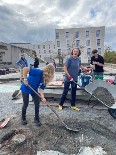 Das Büro für Nachhaltigkeit führte gemeinsam mit Studierenden, Beschäftigten und Interessierten eine Entsiegelungsaktion auf dem Mensavorplatz durch. Innerhalb von drei Tagen wurden dort im Rahmen des Wettbewerbs tonnenweise Kies entfernt, neues Pflanzsubstrat eingebracht und klimaresiliente Stauden eingesetzt.