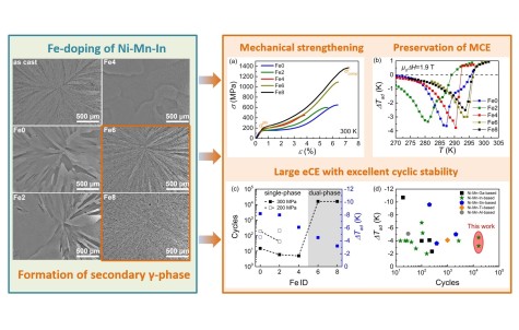Ni-Mn-based metamagnetic shape-memory alloys are highly promising for solid-state caloric cooling applications but commonly exhibit structural and functional fatigue during cyclic operation.