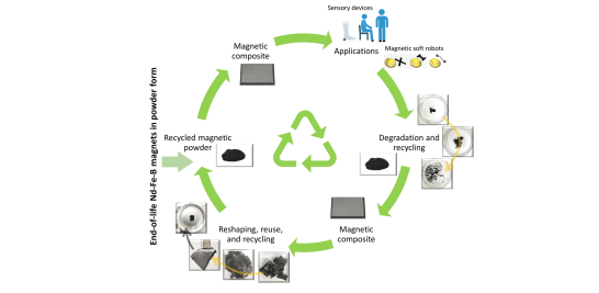 Degradable Magnetic Composites from Recycled Nd-Fe-B Magnets for Soft Actuation and Sensing