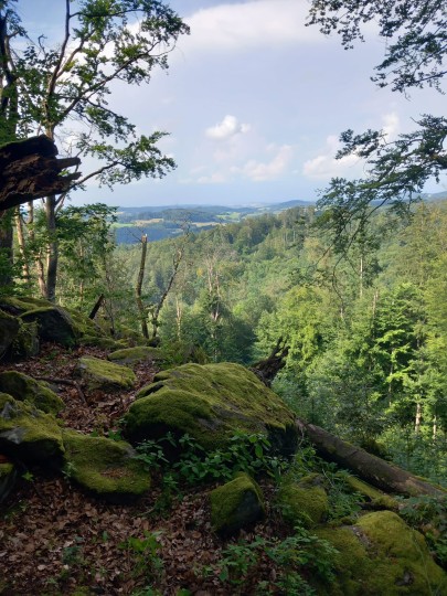 Richard ist auf den Knodener Kopf gewandert, von dem aus man einen herrlichen Blick auf das Tal hat. Ganz gleich, ob ihr auf der Suche nach einem Soloabenteuer oder einem Ausflug mit Freund:innen seid, der Odenwald bietet ruhige Landschaften und frische Luft.