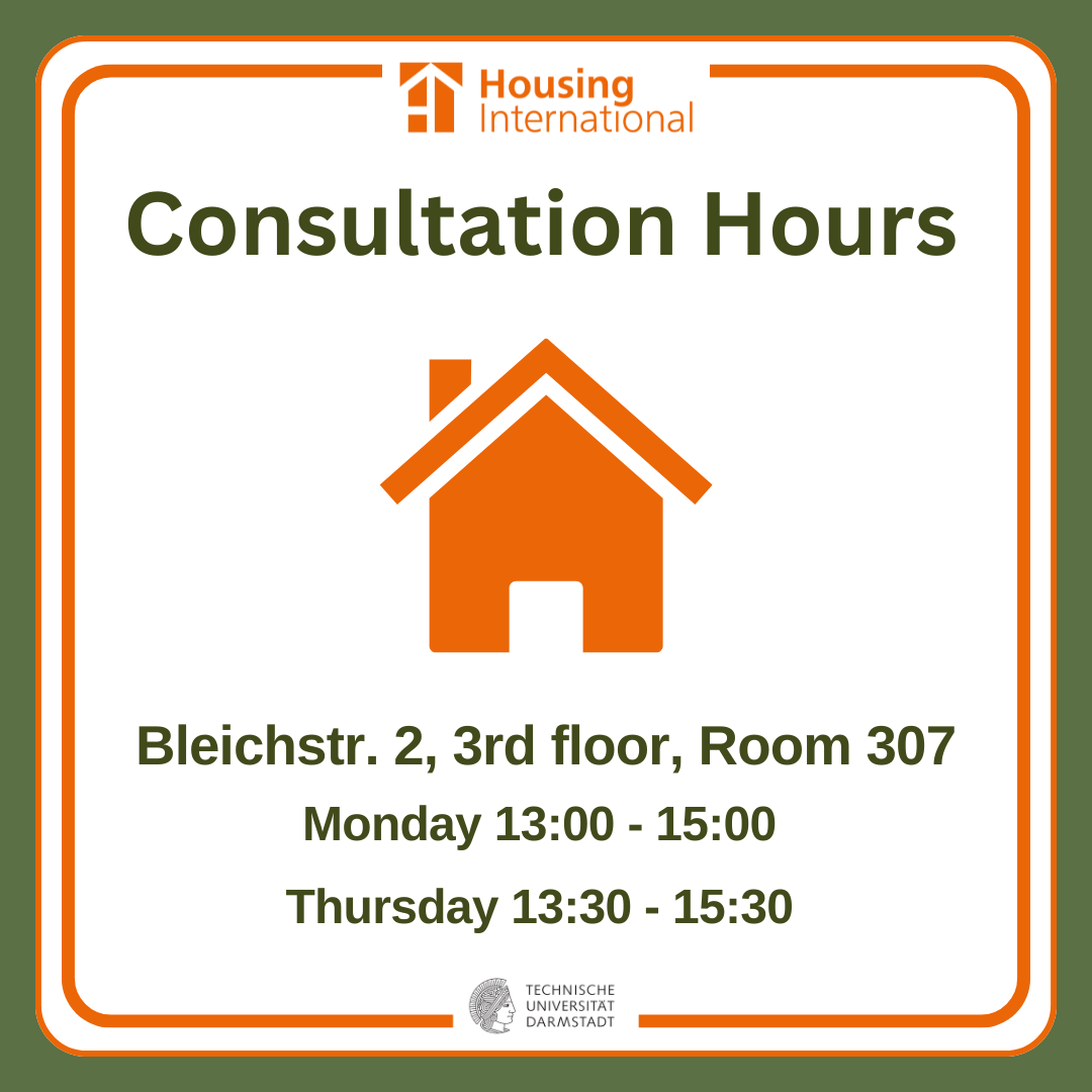 As an international student of TU Darmstadt you can come by during our office hours to receive advice and support with regard to your housing questions.