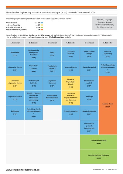 Der Studiengang B.Sc. Biomolecular Engineering ‒ Molekulare Biotechnologie an der TU Darmstadt ist ein gemeinsamer Studiengang der Fachbereiche Chemie und Biologie.